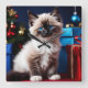 Ragdoll Kitten Christmas Present Quadratische Wanduhr