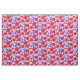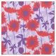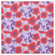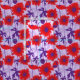 Fett lila Blatt und roter Mohn wiederholen gemusterte Gewebe. Entworfen von Sarah Trett.