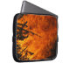 Ein Haufen silhouettierter Sticks auf der links Bildseite brennen heiß. Die dunkelorangen und gelben Flammen, die das Merizing bilden, füllen den größten Teil des Bilderrahmens. Der Wind drückt den Flammentorrent so, dass er schräg nach rechts abbiegst. Digitales, Farbfoto. Copyright © 2010 Claire E. Skinner. Alle Rechte vorbehalten.