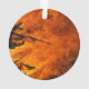 Ein Haufen silhouettierter Sticks auf der links Bildseite brennen heiß. Die dunkelorangen und gelben Flammen, die das Merizing bilden, füllen den größten Teil des Bilderrahmens. Der Wind drückt den Flammentorrent so, dass er schräg nach rechts abbiegst. Digitales, Farbfoto. Copyright © 2010 Claire E. Skinner. Alle Rechte vorbehalten.
