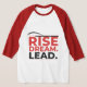Regenerieren der Lautstärke_up Dieser T - Shirt zeichnet sich durch ein fett-zweifarbiges Design aus. Die Worte "Rise Dream Lead" werden vertikal in einem sauberen, modernen Schriftart gestapelt. "Aufstieg" und "Blei" sind in einem auffälligen Rot gedruckt, während "Dream" in knusprigem Schwarz herausragt. Die Kontrastfarben erzeugen eine kraftvolle und motivierend Aussage.