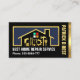 Cover verfügt über einen goldenen Rahmen mit einem handlichen Gebäude-Design. Die Goldwerkzeuge können einige der Dienstleistungen darstellen, die Sie anbieten. Darunter finden Sie Ihren Firmennamen und die Kontaktdaten. Ihr Prestigename (in Imitat Gold) wird senkrecht neben einem goldenen Streifen gehalten. Auf der Rückseite wird dieselbe goldene Streifen-Titelseite verwendet, auf der die Kartendetails auf der rechten Seite der Karte angezeigt werden. Oben steht ein "Zuhause handyman tools" Logo, das Sie verwenden können, gefolgt von Ihrem renommierten Namen, Kontaktdaten und einem Slogan, den Sie ändern können. Eine großartige Karte für alle, besonders für Handwerker, Innenarchitekten und Bauunternehmen. #handyman #construction #buildingtragnehmer #generaltratragnehmer #homerepair #tratragning #remodeling #renovation #handymantools #builder #builder #Gebäude #interiordesign #roofing #roferer #roofingtratragning #homeimprovement #zazzlemade