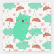 Rining Katzen für Zuhause, Büro und Privatgebrauch mit Regen, Regenschirmen, Polka gepunkteten aquamarinen Wolken, Regenschirmen und einer aquamarin lächelnden Katze, einer niedlichen, lustigen, fröhlichen, skurrilen Gestalt für Katzenliebhaber jeden Alters!