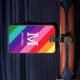 Liebe hat keine Grenzen. Feiern Sie den Juni Pride Month und zeigen Sie Ihre Unterstützung für die LGBTQ Community mit dieser originalen Gilbert Baker 8 Stripe Regenbogen Gay Pride Gepäckmarke mit individuellem Monogramm Initial. Baker entwarf lila Farbtöne wie heiß rosa, rot, orange, gelb, grün, türkis, indigo und violett, um ein allumfassendes Symbol für die LGBTQ+ Community zu sein.