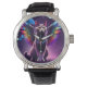 Uhr, Klassische Damenuhr mit schwarzen Lederarmband