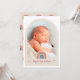 Teilen Sie Ihre neue Freude mit diesem Single Foto-Geburtsankündigung. Diese Geburtsankündigung zeigt eine Bogenform, die Ihr beliebtes neugeborenes Foto umrahmt. Ein handgezeichneter Regenbogen in der Wüstenpalette Krawatte dieses modernen Designs zusammen.
