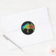Ein in Regenbogenfarbe gehaltener Axolotl vor schwarzem Hintergrund.