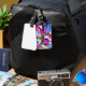 mit originellem Design aus Aquarellmalerei der Künstlerin Sacha Grossel aus hellen, farbenfrohen, mehrfarbigen Azalea-Blume. Dieses Blumendesign zeigt eine nahe Makroansicht dieser gemeinsamen Blume mit Rot-, Blau- und lila Blütenblättern, die diesem botanisch inspirierten Design ein abstraktes, surreales Ambiente verleihen. Dieses Gepäckanhänger kann auf der Rückseite so angepasst werden, dass es Ihre persönlichen Daten enthält.