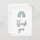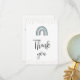 Die Rainbow Baby Boy Shower Dankeschön Card ist ein berührender Weg, Dankbarkeit für Ihr Wunder zum Ausdruck zu bringen. Mit einem skurrilen Regenbogen-Design in sanften Blues und Pastelltönen strahlt diese Karte Hoffnung und Freude aus. Mit seinen charmanten Details dient es als herzliches Dankeschön an Ihre Gäste für ihre Liebe und Unterstützung an diesem besondere Anlass.
