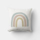 Kissen mit gedämpftem Regenbogen, handbedruckt in rot, gelb und hellblau. Personalisieren Sie den Namen und das Geburtsdatum des Babys oder Kindes.