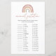 Die Rainbow Themed Baby Dusche Tiergestationskarte bietet eine Aquarellbilder und einen eleganten Schriftart im handgeschriebenen Stil.