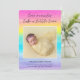 Diese Lieblingsankündigung zeigt einen Aquarellbogen-Hintergrund und die Worte: "Selbst Wunder brauchen ein wenig Zeit." Einfach mit eigenen Texten und Fotos des Babys anpassen!