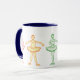 Eine Reihe von niedlichen, regenbogenfarbenen Ballerinen, die die traditionellen Ballettpositionen zeigen.