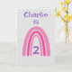 Dieses süße Regenbogendesign kann mit Name und Alter personalisiert werden. Hübsche Rosa und Lila Farben. Der Vers im Inneren kann behalten, verändert oder entfernt werden, indem man der "Personalize"-Eingabeaufforderung folgt.