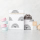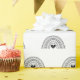 Ein Niedlich gezeichnetes, schwarz-weißes Regenbogenmuster schmückt dieses Packpapier. Spaß Packpapier für ein Mädchen Geburtstag. Entworfen für Sie von BlackBerry Boulevard.