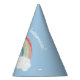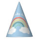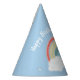 Niedliches Regenbogen-Geburtstagsdesign ist hübsch in sanften Aquarellen auf blauem Hintergrund. Ideal für Frühling und Sommer Geburtstage.