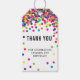 Rainbow Birthday Party Vielen Dank, dass Sie Tags mit personalisiertem Text und bunten Konfetti um den Rand