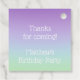 Gastgeschenk Tags für Ihre Geburtstagsparty Tisch in blau und lila Regenbogen für eine Jungen Geburtstagsparty.