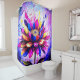 Dieser farbenfrohe Duschvorhang hat eine künstlerische Blume.