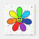 Eine fröhliche Blume mit Regenbogenblättern auf einem farbenfrohen, matten Hintergrund.