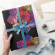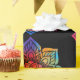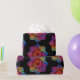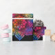 Das Design bietet eine regenbogenfarbene Blume mandala Abbildung auf schwarzem Hintergrund.