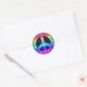 Dunkelblauer Aufkleber mit einem Regenbogen-Blume-Friedenszeichen-Design.