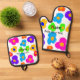 Rainbow Blume Pride Liebe hinzufügen Namenstext lq Ofenhandschuh & Topflappen-Set