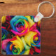 Dieser Schlüsselanhänger hat Regenbogen-Rose darauf.