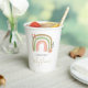 Niedliches Boho Rainbow Baby duscht maßgeschneiderte Papiertassen mit gedämpften Farben und Erdtönen. Entwickelt und illustriert mit Liebe von Kristine Lee www.kristineleedesigns.com