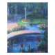 Regenbogen huschte Brücke über einen Teich. Schöne Szene für Kinder. Originelle Acrylkunst.