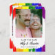 LGBTQ Doppelseitige Save the Date-Karte mit Pinselstrichen, die ein Foto des Paares mit schwarzem Text abrahmen. Auf der anderen Seite, ein anderes Foto und Ihre Hochzeitswebsite, damit Ihre Gäste mehr Informationen über Ihre kommende Hochzeit online finden können.