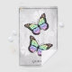 Ein einzigartiges Handtuch zum Golfen mit einem Personalisierten Rainbow Butterfly Golf Handtuch. Das Handtuchdesign besticht durch ein Paar lebendiger Schmetterlinge, die sich auf einer weißen, blumigen Rebsorte vor einem hellgrauen Hintergrund ruhen. Zusätzliche Geschenkartikel in diesem Design sowie eine Vielzahl von Farben.