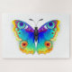 Regenbogen, realistisch, künstlerisch gezeichnet, helle Farben Pfauenschmetterling mit texturierten detaillierten Flügeln auf weißem Hintergrund. Regenbogenschmetterling.