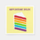 Fügen Sie Ihrem Party mit diesen personalisierten Papierservietten Farbe hinzu. Sie enthalten eine Abbildung eines Stückes Regenbogenschicht-Kuchen und Ihre eigene, individuelle Nachricht.