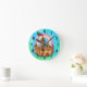 Rainbow Castle Uhr, T - Shirt, Schlossbekleidung, Fantasiegeschenke von ArtMuvz Illustration. Niedlicher T - Shirt, Totenbeutel, Hut, Tasse. Zauberschlossgeschenke und Bekleidung der Prinzessin. Fügen Sie Ihren Namen hinzu oder fügen Sie stattdessen Text hinzu. Passen Sie diese Uhr an, um sie einzigartig zu machen oder als personalisiertes Geschenk zu geben