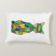 Ein buntes Kätzchengemälde. Die Katze sitzt mit ihrem Schwanz, der um ihre Pfoten herum gefangen ist. Das Design ist auf beiden Seiten des Kissens.