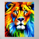 Rainbow Cat Lion Poster - Fantasy Digital Art Prin