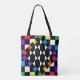 Die perfekte Taschentasche für eine Strandtasche oder eine Picknick-Tasche mit Regenbogenfarben und -schachbrett quadriert in einem Designermuster für einen modernen Blick des Chic. Spaß und bunte Taschentasche ist groß zu verwenden da eine Einkaufstasche, Strand-Tasche, eine Tasche, zum des Picknicks oder der Imbisse zu tragen. Wunderbarer vibrierender Entwurf. CricketDiane Designer/Künstler 2017 und Kricket-Haus-Studio-Kunst und Entwurf.