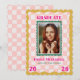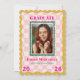Celebrate your graduate with this Rainbow Checkered Grad Announcement with Photo, featuring a cute wavy checkered pattern in soft pastel pink. A bold, wavy frame in mustard color and a teal smaller frame to highlight the graduate’s photo, while bright pink typography emphasizes the school name and graduation year for a fun, modern look.