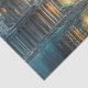 Ein majestätischer Regenbogen-farbener chinesischer Drache erhebt sich aus den tiefen Gewässern, sein serpentiner Körper schimmert in kräftigen Tönen aus Rot, Blau, Grün und Gold. Zu den links steht ein traditionelles chinesisches Gebäude hoch, das verzierte Dach und die aufwändigen Details sorgen für ein Geheimnis und eine Geschichte. Auf der rechten Seite leuchten heftige Flammen, ihr feuriges Glühen steht im Kontrast zum coolen Wasser und symbolisiert das Gleichgewicht von Power und Energie.