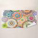 Dieses Handtuch-Set hat ein Bauhaus-Design aus konzentrischen Kreisen, die sich in vielen Farbtönen überlagern.