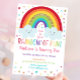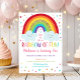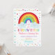 Dieser niedliche Geburtstag lädt mit einem bunten Regenbogen und Wolken mit Regenbogenkonfetti und Imitaten goldenen Glitzer Akzente.