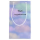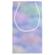 Weiche, flauschige Wolken in Regenbogenfarben auf blauem Hintergrund. Personalisieren Sie Ihre Bestellung mit einem Namen und einer Nachricht auf der Vorderseite der Geschenktasche.