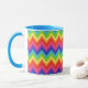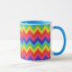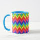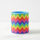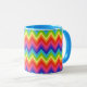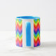 Ein helles Regenbogenmuster schmückt diese lustige Kaffeemaschine-Tasse. Das Design stammt aus der Originalkunst.