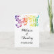 Farbenfrohe Scrollblatt Hochzeit Danke Foto Note Karte, mit einem bunten Scrollblatt in Regenbogenfarben auf weißem Hintergrund. Dein Foto ist innen. Dieses fröhliche Blumendesign ist Teil eines Hochzeitsstils und ist ein vollständig anpassbares Template. Anpassen oder auf "Anpassen" klicken, um Schriftart und Textfarbe zu ändern.