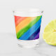 Rainbow Colors Shot Glass. Dieses Glas ist mit Aquarellstreifen in Regenbogenfarben dekoriert.