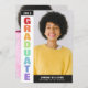 Rainbow Color Graduation Party Einladung personalisiert mit einem Foto auf beiden Seiten der Abschluss feierliche Einladung. Graduate geschrieben auf der Seite der Einladung in einem Regenbogenombre, eine Farbe pro Buchstabe. Ideal für einen LGBT Teenager oder nur für eine Teeny, die Regenbogenfarben Liebe. Farbenfrohe moderne Typografie Abschluss Einladung. Rainbow Typografie Abschluss Einladung und Ankündigung personalisiert mit Fotos.