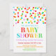 Individuelle Text Baby Dusche Einladung in Regenbogenkonfetti Muster.