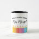 Ein wunderbares Geschenk für Ihren Lieblings-Schullehrer. Farbenfrohe Stifte grenzen die Kaffeemaschine mit dem personalisierten Lehrernamen im modernen Script-Schriftart an die Tasse.
