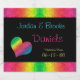 Ein schlichtes und elegantes personalisiertes Schaumweinlabel mit einer Touch von Regenbogenfarben. Der Hintergrund (hier in schwarz dargestellt) kann in eine beliebige Farbe geändert werden, die Sie gewollt haben, um Ihren Hochzeitsfarben zu entsprechen. Wähle entweder ein Herz eines Schmetterlings als Akzent-Bild oder lade stattdessen ein Bild deiner Wahl hoch. Ein schönes Geschenk für jede Braut oder jeden Bräutigam. Diese individuellen Etiketten können für jede beliebige Anzahl von Flaschentypen bestellt werden, was es zu einer großartigen Wahl macht, Ihren Empfang individuell zu gestalten.